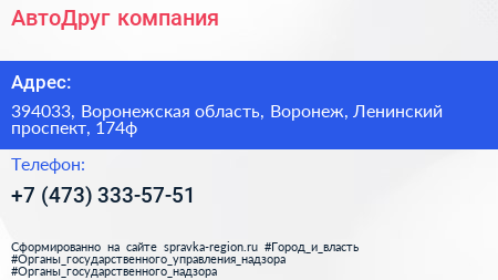 АвтоДруг, компания по адресу 394033, Воронежская область, Воронеж, Ленинский проспект, 174ф в дальнейшем Организация, размещена в следующих категориях: