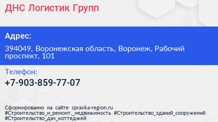 ДНС Логистик Групп по адресу 394049, Воронежская область, Воронеж, Рабочий проспект, 101 в дальнейшем Организация, размещена в следующих категориях: