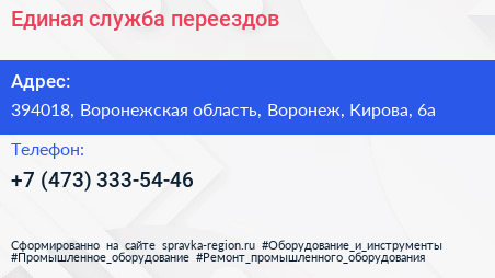 Единая служба переездов по адресу 394018, Воронежская область, Воронеж, Кирова, 6а в дальнейшем Организация, размещена в следующих категориях: