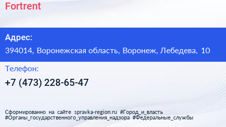 Fortrent по адресу 394014, Воронежская область, Воронеж, Лебедева, 10 в дальнейшем Организация, размещена в следующих категориях: