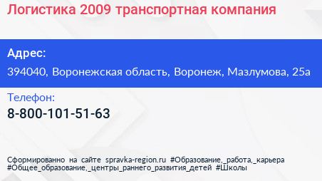 Логистика-2009, транспортная компания по адресу 394040, Воронежская область, Воронеж, Мазлумова, 25а в дальнейшем Организация, размещена в следующих категориях: