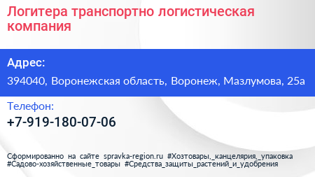 Логитера, транспортно-логистическая компания по адресу 394040, Воронежская область, Воронеж, Мазлумова, 25а в дальнейшем Организация, размещена в следующих категориях: