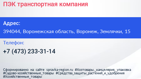 ПЭК, транспортная компания по адресу 394044, Воронежская область, Воронеж, Землячки, 15 в дальнейшем Организация, размещена в следующих категориях: