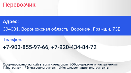 Перевозчик по адресу 394031, Воронежская область, Воронеж, Грамши, 73Б в дальнейшем Организация, размещена в следующих категориях: