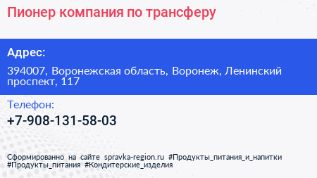 Пионер, компания по трансферу по адресу 394007, Воронежская область, Воронеж, Ленинский проспект, 117 в дальнейшем Организация, размещена в следующих категориях:
