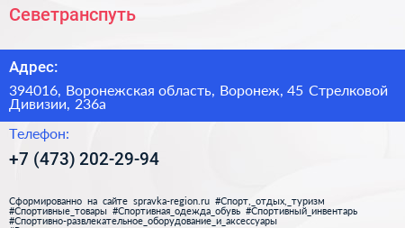 Севетранспуть по адресу 394016, Воронежская область, Воронеж, 45 Стрелковой Дивизии, 236а в дальнейшем Организация, размещена в следующих категориях: