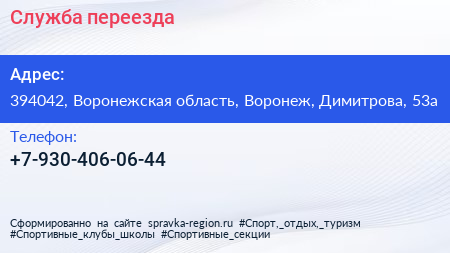 Служба переезда по адресу 394042, Воронежская область, Воронеж, Димитрова, 53а в дальнейшем Организация, размещена в следующих категориях: