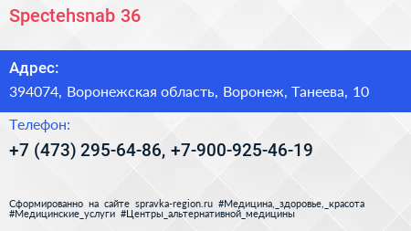 Spectehsnab 36 по адресу 394074, Воронежская область, Воронеж, Танеева, 10 в дальнейшем Организация, размещена в следующих категориях:
