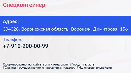 Спецконтейнер по адресу 394028, Воронежская область, Воронеж, Димитрова, 156 в дальнейшем Организация, размещена в следующих категориях: