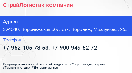 СтройЛогистик, компания по адресу 394040, Воронежская область, Воронеж, Мазлумова, 25а в дальнейшем Организация, размещена в следующих категориях: