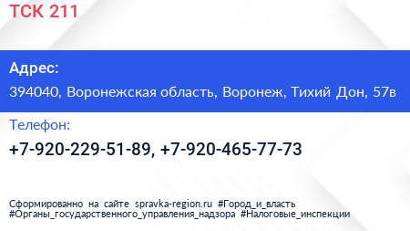 ТСК-211 по адресу 394040, Воронежская область, Воронеж, Тихий Дон, 57в в дальнейшем Организация, размещена в следующих категориях: