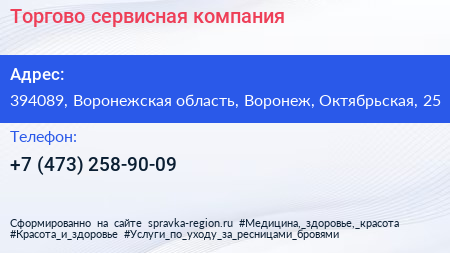 Торгово-сервисная компания по адресу 394089, Воронежская область, Воронеж, Октябрьская, 25 в дальнейшем Организация, размещена в следующих категориях: