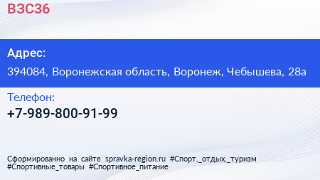 ВЗС36 по адресу 394084, Воронежская область, Воронеж, Чебышева, 28а в дальнейшем Организация, размещена в следующих категориях: