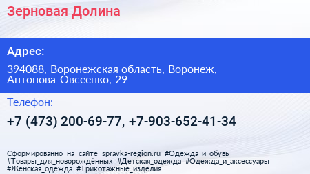 Зерновая Долина по адресу 394088, Воронежская область, Воронеж, Антонова-Овсеенко, 29 в дальнейшем Организация, размещена в следующих категориях: