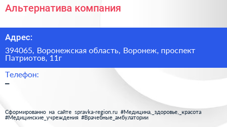 Альтернатива, компания по адресу 394065, Воронежская область, Воронеж, проспект Патриотов, 11г в дальнейшем Организация, размещена в следующих категориях: