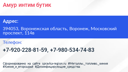 Амур, интим-бутик по адресу 394053, Воронежская область, Воронеж, Московский проспект, 114в в дальнейшем Организация, размещена в следующих категориях: