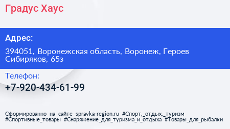 Градус Хаус по адресу 394051, Воронежская область, Воронеж, Героев Сибиряков, 65з в дальнейшем Организация, размещена в следующих категориях: