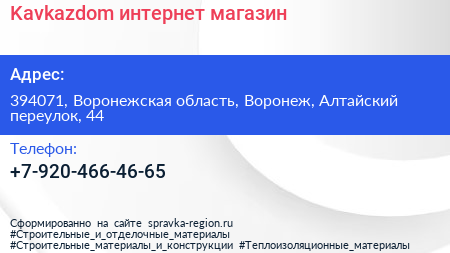 Kavkazdom, интернет-магазин по адресу 394071, Воронежская область, Воронеж, Алтайский переулок, 44 в дальнейшем Организация, размещена в следующих категориях: