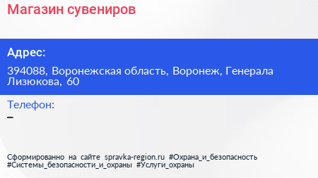 Магазин сувениров по адресу 394088, Воронежская область, Воронеж, Генерала Лизюкова, 60 в дальнейшем Организация, размещена в следующих категориях: