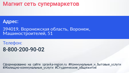 Магнит, сеть супермаркетов по адресу 394019, Воронежская область, Воронеж, Машиностроителей, 51 в дальнейшем Организация, размещена в следующих категориях: