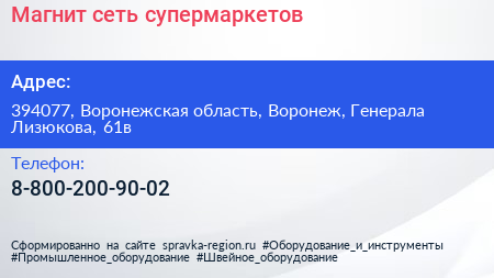 Магнит, сеть супермаркетов по адресу 394077, Воронежская область, Воронеж, Генерала Лизюкова, 61в в дальнейшем Организация, размещена в следующих категориях: