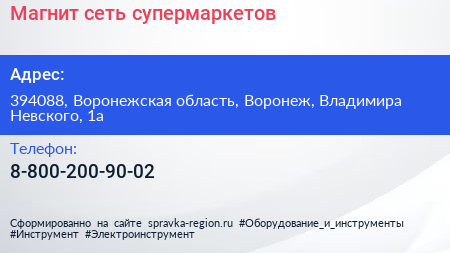 Магнит, сеть супермаркетов по адресу 394088, Воронежская область, Воронеж, Владимира Невского, 1а в дальнейшем Организация, размещена в следующих категориях: