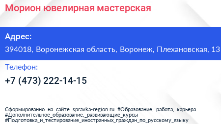 Морион, ювелирная мастерская по адресу 394018, Воронежская область, Воронеж, Плехановская, 13 в дальнейшем Организация, размещена в следующих категориях: