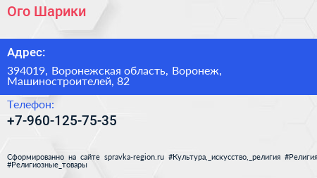 Ого!Шарики! по адресу 394019, Воронежская область, Воронеж, Машиностроителей, 82 в дальнейшем Организация, размещена в следующих категориях: