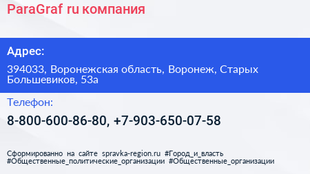 ParaGraf.ru, компания по адресу 394033, Воронежская область, Воронеж, Старых Большевиков, 53а в дальнейшем Организация, размещена в следующих категориях: