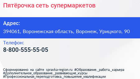Пятёрочка, сеть супермаркетов по адресу 394061, Воронежская область, Воронеж, Урицкого, 90 в дальнейшем Организация, размещена в следующих категориях: