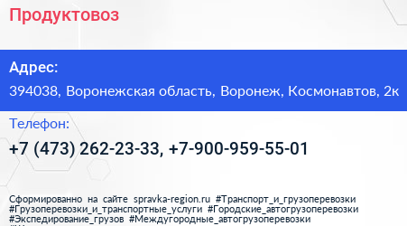 Продуктовоз по адресу 394038, Воронежская область, Воронеж, Космонавтов, 2к в дальнейшем Организация, размещена в следующих категориях: