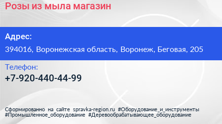 Розы из мыла, магазин по адресу 394016, Воронежская область, Воронеж, Беговая, 205 в дальнейшем Организация, размещена в следующих категориях: