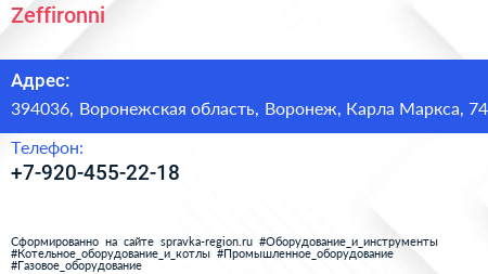 Zeffironni по адресу 394036, Воронежская область, Воронеж, Карла Маркса, 74 в дальнейшем Организация, размещена в следующих категориях: