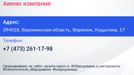 Для связи с организацией воспользуйтесь номером телефона: +7 (473) 261-17-98. Пн: c 08:30-17:30, Вт: c 08:30-17:30, Ср: c 08:30-17:30, Чт: c 08:30-17:30, Пт: c 08:30-17:30, Сб: выходной, Вс: выходной, вы можете обратиться в эту организацию.