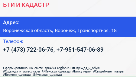 БТИ И КАДАСТР по адресу Воронежская область, Воронеж, Транспортная, 18 в дальнейшем Организация, размещена в следующих категориях: