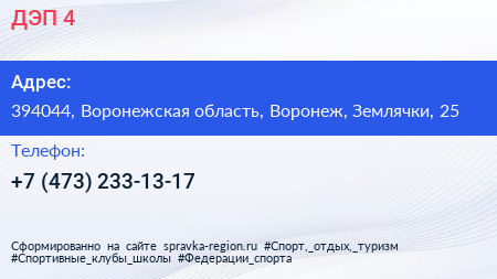 ДЭП-4 по адресу 394044, Воронежская область, Воронеж, Землячки, 25 в дальнейшем Организация, размещена в следующих категориях: