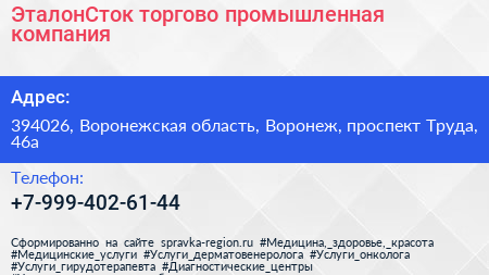 ЭталонСток, торгово-промышленная компания по адресу 394026, Воронежская область, Воронеж, проспект Труда, 46а в дальнейшем Организация, размещена в следующих категориях:
