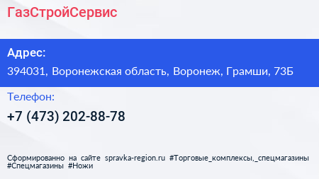 ГазСтройСервис по адресу 394031, Воронежская область, Воронеж, Грамши, 73Б в дальнейшем Организация, размещена в следующих категориях: