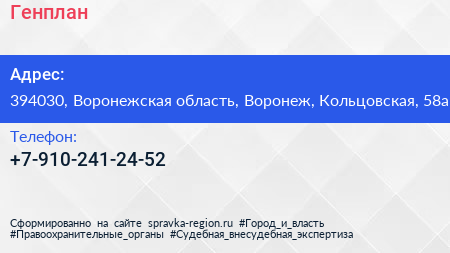 Генплан по адресу 394030, Воронежская область, Воронеж, Кольцовская, 58а в дальнейшем Организация, размещена в следующих категориях:
