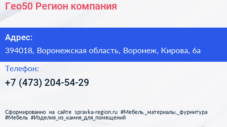 Гео50 Регион, компания по адресу 394018, Воронежская область, Воронеж, Кирова, 6а в дальнейшем Организация, размещена в следующих категориях: