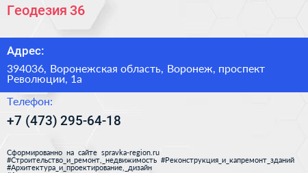 Геодезия 36 по адресу 394036, Воронежская область, Воронеж, проспект Революции, 1а в дальнейшем Организация, размещена в следующих категориях:
