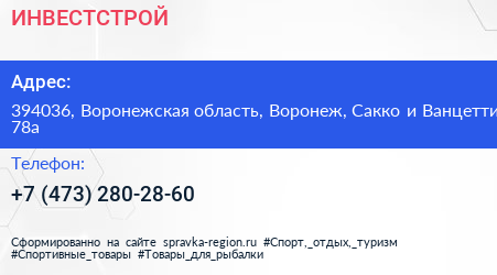 ИНВЕСТСТРОЙ по адресу 394036, Воронежская область, Воронеж, Сакко и Ванцетти, 78а в дальнейшем Организация, размещена в следующих категориях: