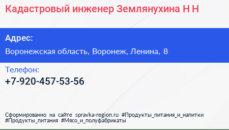 Кадастровый инженер Землянухина Н.Н. по адресу Воронежская область, Воронеж, Ленина, 8 в дальнейшем Организация, размещена в следующих категориях:
