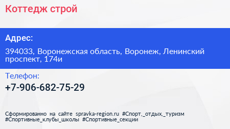 Коттедж-строй по адресу 394033, Воронежская область, Воронеж, Ленинский проспект, 174и в дальнейшем Организация, размещена в следующих категориях: