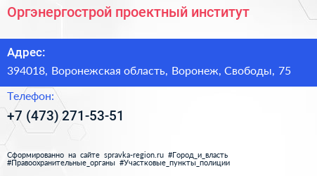 Оргэнергострой, проектный институт по адресу 394018, Воронежская область, Воронеж, Свободы, 75 в дальнейшем Организация, размещена в следующих категориях: