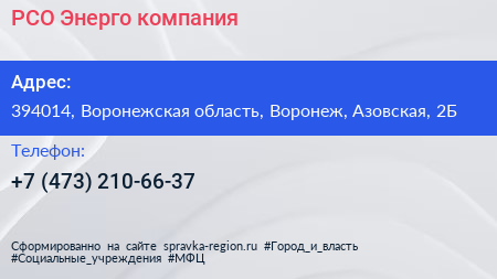 РСО-Энерго, компания по адресу 394014, Воронежская область, Воронеж, Азовская, 2Б в дальнейшем Организация, размещена в следующих категориях: