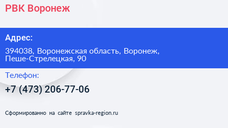 РВК-Воронеж по адресу 394038, Воронежская область, Воронеж, Пеше-Стрелецкая, 90 в дальнейшем Организация, размещена в следующих категориях: