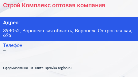 Строй Комплекс, оптовая компания по адресу 394052, Воронежская область, Воронеж, Острогожская, 69а в дальнейшем Организация, размещена в следующих категориях: