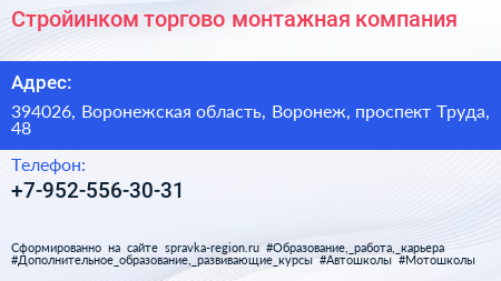 Стройинком, торгово-монтажная компания по адресу 394026, Воронежская область, Воронеж, проспект Труда, 48 в дальнейшем Организация, размещена в следующих категориях: