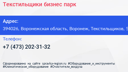 Текстильщики, бизнес-парк по адресу 394026, Воронежская область, Воронеж, Текстильщиков, 5 в дальнейшем Организация, размещена в следующих категориях: